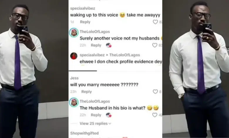 Things took a hilarious turn when his wife, known on TikTok as @TheLoloOfLagos, stormed the comments to reply to almost every admirer — and she did it with pure savage humor!